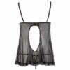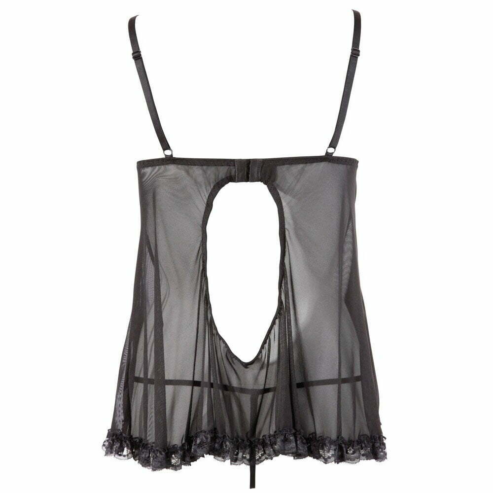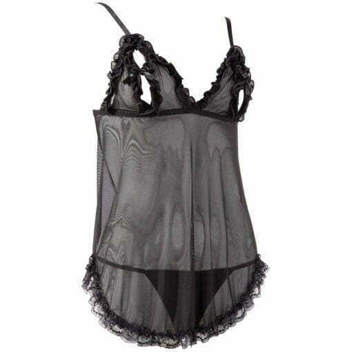 The Cottelli Open Babydoll And String Back showcases a beautifully designed black babydoll that exudes allure.